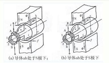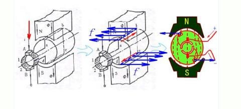 此時載流導(dǎo)體ab和cd受到電磁力的作用方向同樣可由左手定則判定,它們產(chǎn)生的轉(zhuǎn)矩仍然使得轉(zhuǎn)子逆時針轉(zhuǎn)動。這就是微型直流電機的工作原理。外加的電源是直流的,但由于電刷和換向片的作用,在線圈中流過的電流是交流的,其產(chǎn)生的轉(zhuǎn)矩的方向卻是不變的。
